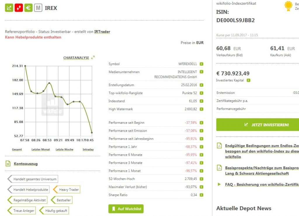 Wovon rede ich? IR Systems, dessen wikifolio IREX es innerhalb von gut 6 Wochen schaffte, etwa 7 Mio in die Tonne zu klopfen.