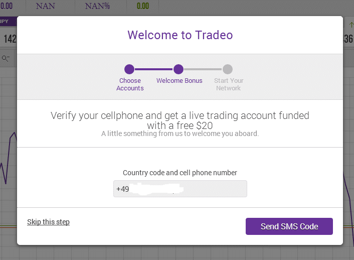 Mein heutiger Einloggversuch in meinen bestehenden Account bei tradeo führte mich auch sofort durch die neue Anmelderoutine.