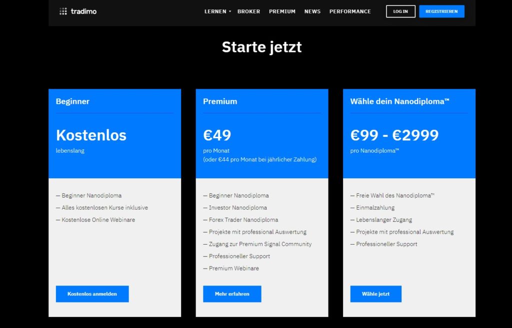 Tradimo hatte mit viel Engagement eine Art Baukastensystem zum Thema Traden lernen aufgebaut, Kursleiter engagiert, Echtgelddepots aufgelegt und versucht, mit bezahlten Mitgliedschaften eine dauerhaft finanzielle Basis zu schaffen. Ob das so gelungen ist, mag ich nicht beurteilen.