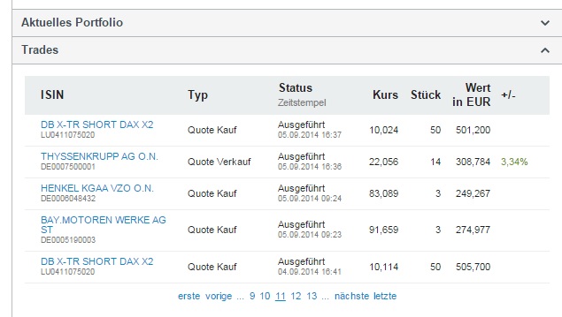 Ansatzweise habe ich die Systematik im derzeit investierbaren wikifolio umgesetzt. Die Käufe im September 2014 legen davon Zeugnis ab.