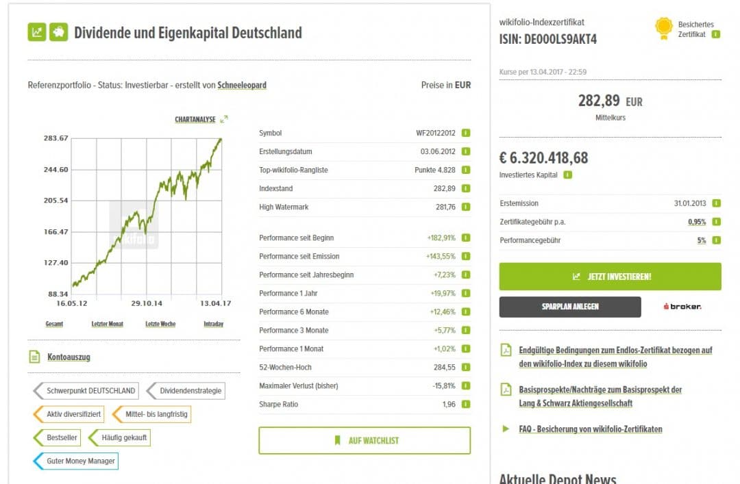 Sage und schreibe 22,8 Mio Euro sind aktuell im erfolgreichsten wikifolio investiert – Qualität, angelehnt an Susan Levermann von Stephan Pflug. Auch wikifolio Methusalem Schneeleopard kann seine nun schon 5 jährige Erfolgsstory fortschreiben. Der Trader hinter dem Nickname Schneeleopard war auch gefragter Gast am Stand von wikifolio.com bei der Trader’s Corner