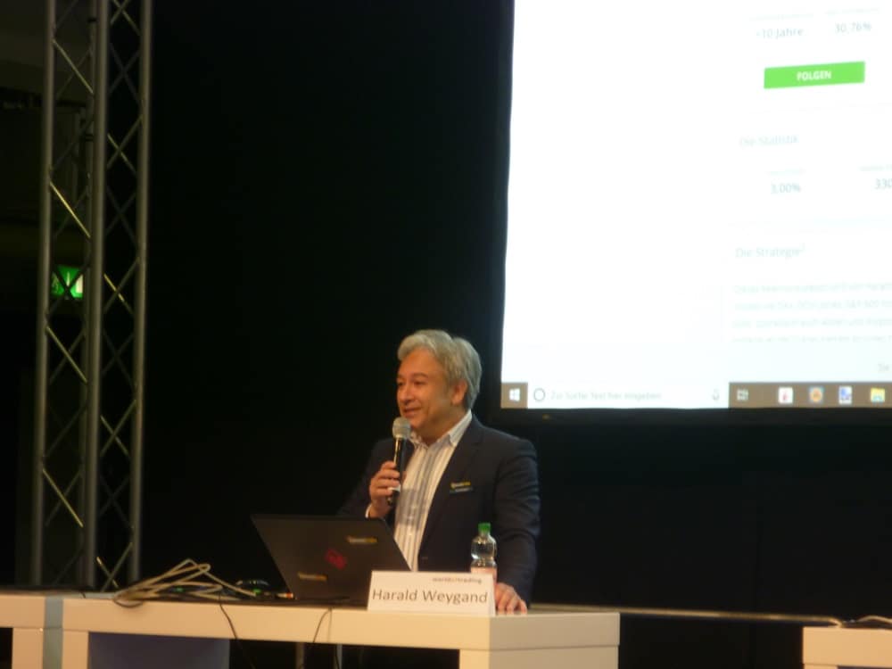 Die Social Trading Plattform aus Frankfurt a.M. hatte sich diesmal prominente Verstärkung für Standgespräche und Bühnenprogramm geholt. Seit Jahresbeginn bereichert das Strategieprofil von GodmodeTrader Gründer Harald Weygand die Hitlisten von ayondo. Der Auftritt scheint aktuell auch schon Wirkung zu zeigen, denn das Traderprofil stieg über das Wochenende bereits zur Nr. 1 der beliebtesten Top Trader auf ayondo auf. Ich hatte hier im Blog ja bereits mehrfach meinen Standpunkt dazu geäußert. Kauft Leistung und keine Namen! Wenn beides aber zusammen passt, dann umso besser.