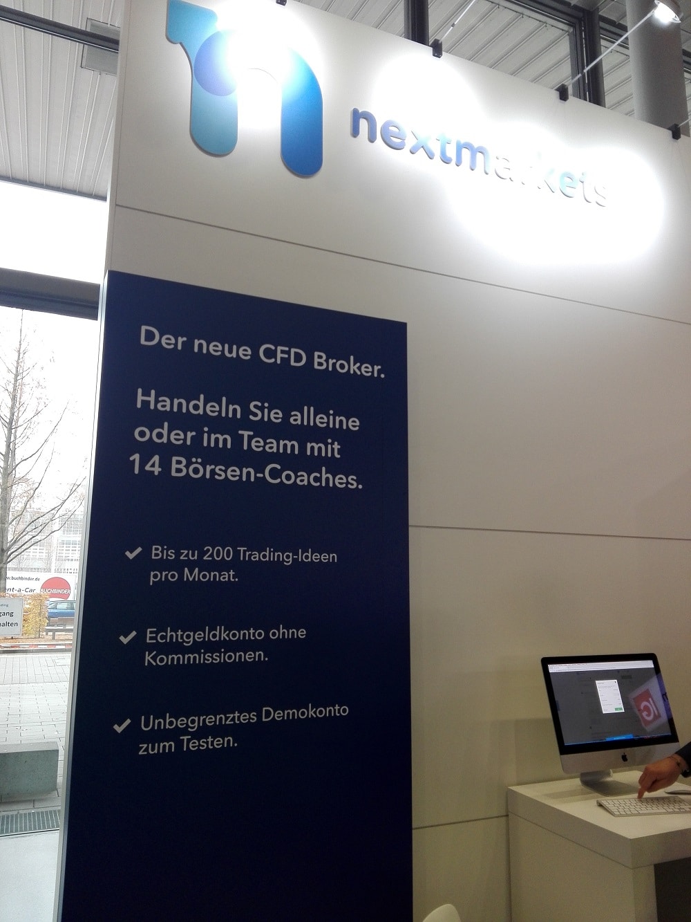 Handeln Sie alleine oder im Team mit 14 Börsen Coaches, so das Motto von nextmarkets. Die Kölner nutzten ihre Messepräsenz auch dazu, ihren Broker und die damit verbundenen Möglichkeiten für ihre Kunden vorzustellen. Selbstverständlich gab es auch hier viel Möglichkeiten zum Austausch am Stand oder im Seminar mit Martin Goersch und Sebastian Steyer.