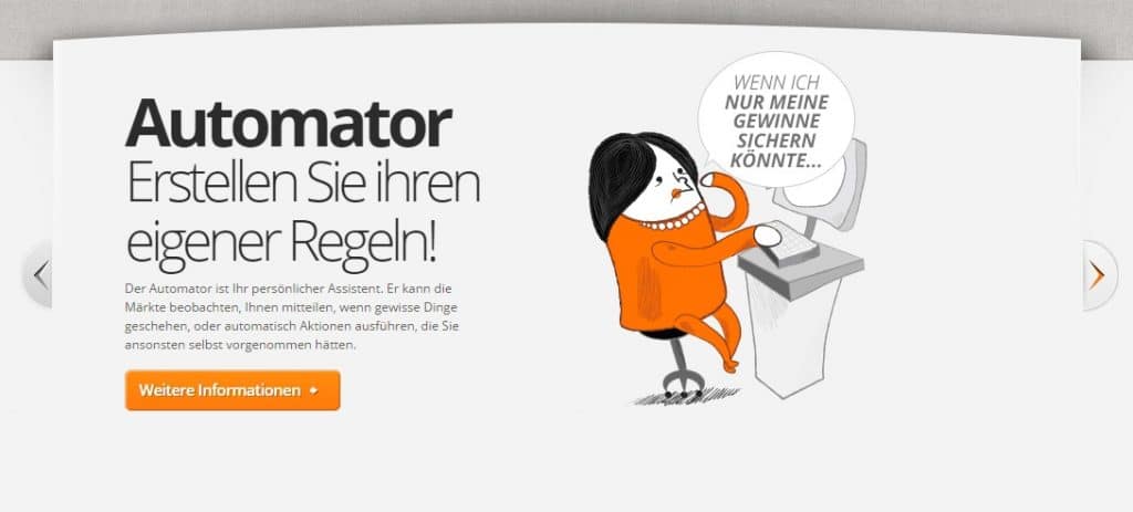 Man findet dies in der Portfoliokonfiguration. Der Automator erlaubt dem Anwender, verschiedene Regeln zu definieren, die im Gewinn- oder Verlustfall ausgeführt werden sollen.