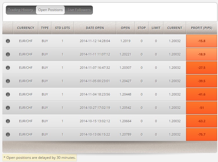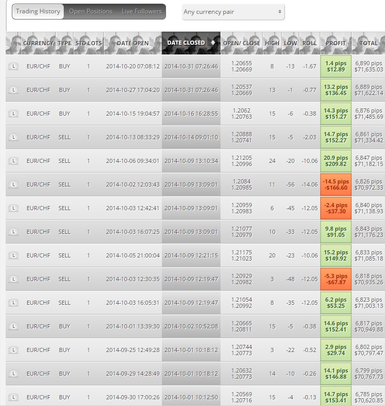 Gut 2,4 Mio Dollar folgen dem Schweizermacher noch. Die Pip Ausbeute bewegt sich immer irgendwo zwischen 2 und 30 und je nach Slippage der folgenden Brokerkonten können die Follower etwas davon profitieren.
