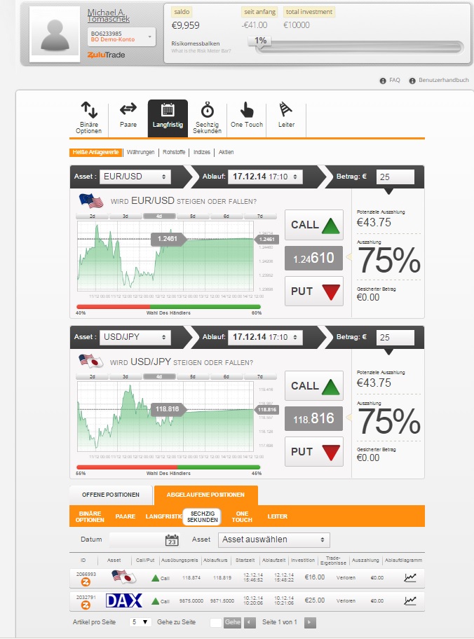 ZuluTrade bedient seit einigen Wochen aber auch eine zweite große „Spielwiese“ – Binäre Optionen.