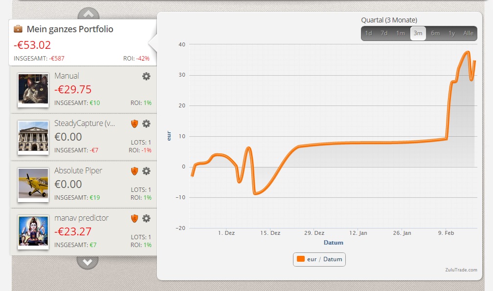 Seit einigen Tagen verfolge ich in dem Miniaccount bei ZuluTrade 3 Signalprovider, die sich in den Top 10 rangiert hatten.