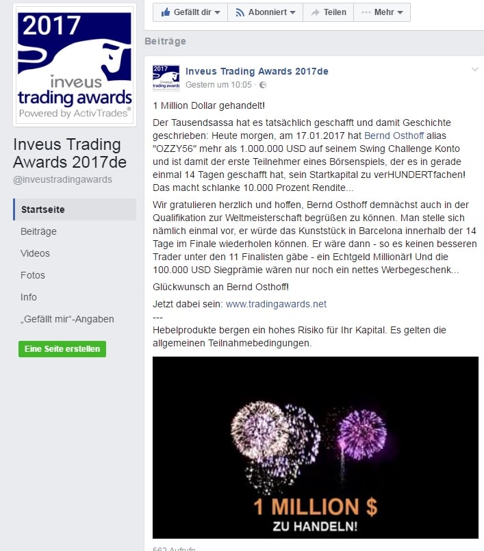 Wen ähnliche Gedanken bewegen, den möchte ich hier etwas motivieren, teilzunehmen. Ein kleines Bonbon habe ich auch für euch. Als einer der ersten Teilnehmer der inveus Trading Awards wurde mir ein kleiner Preis zugelost, den ich hier stiften möchte.